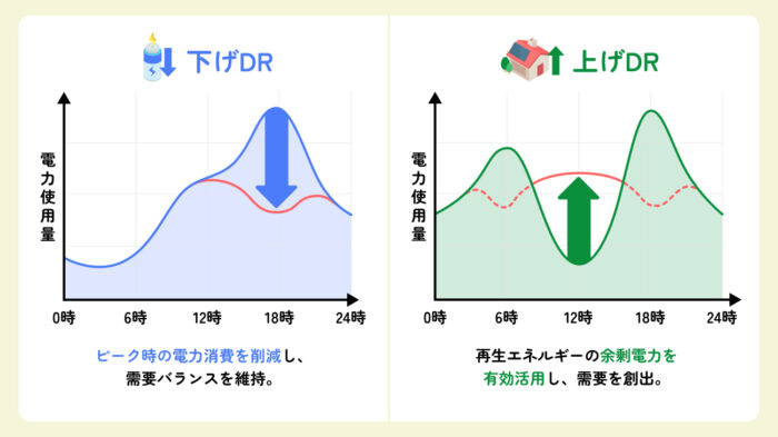 「下げDR(節電)」と「上げDR(消費)」の違い